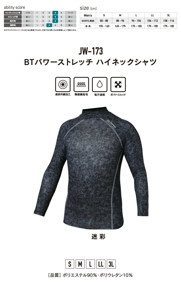 野球やサッカー、ゴルフなどのアンダーウェアにも最適! ●仕様 □品質:ポリエステル90%・ポリウレタン10% □サイズ:L □カラー:迷彩 □入数:5枚