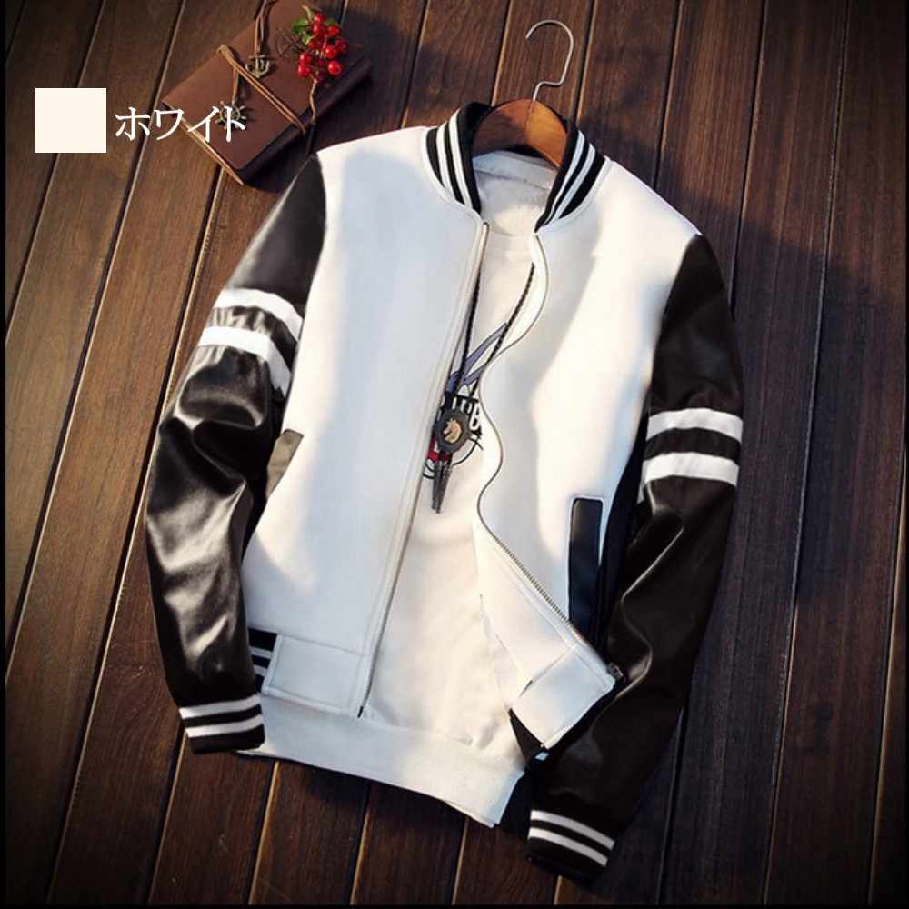 【商品名】ラインレザースタジャン【カラー】ブラック ホワイト【サイズ】M L XL 2XL 3XL【サイズ表記】・Mサイズ:着丈65 身幅100 肩幅42 袖丈62・Lサイズ:着丈67 身幅104 肩幅43 袖丈63・XLサイズ:着丈69 身幅108 肩幅44 袖丈64・2XLサイズ:着丈71 身幅114 肩幅45 袖丈65・3XLサイズ:着丈73 身幅120 肩幅47 袖丈66【素材】合成皮革【重量】0.6kg【季節】春 秋 冬【スタッフコメント】男らしさを象徴するような存在感。
